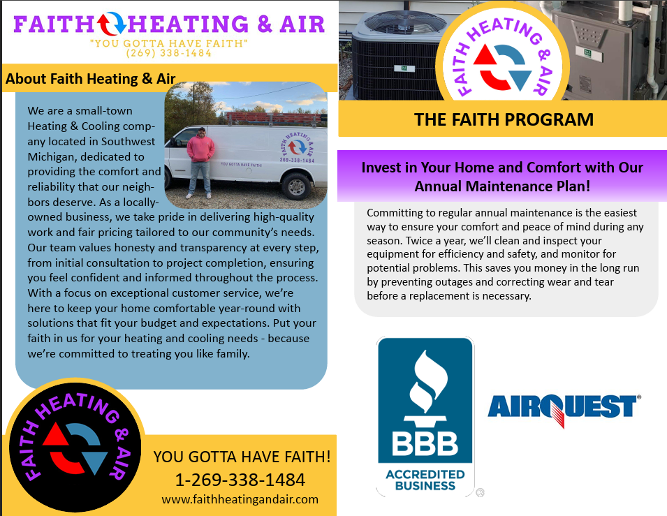 We are a small town Heating & Cooling company, located in Southwest Michigan. We strive for quality work, fair pricing, and the honesty you deserve.